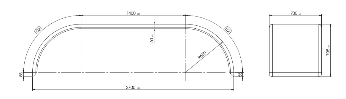 Radius: 650mm